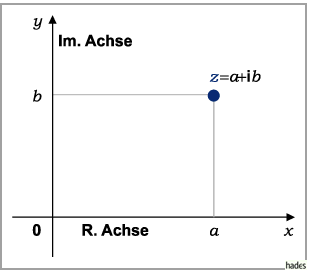 Die reellen Zahlen liegen auf der Abszissenachse, die auch reelle Achse genannt wird,