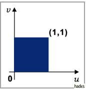 Schwarz dargestellte Gebiete gehen durch die konforme Abbildung in ein Quadrat der