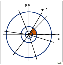 Aus der Darstellung in Polarkoordinaten erkennt man, daß die Koordinatenlinien