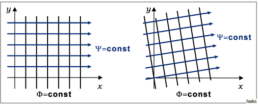 ergibt sich lediglich eine Drehung des Feldes (s. rechte Abbildung).