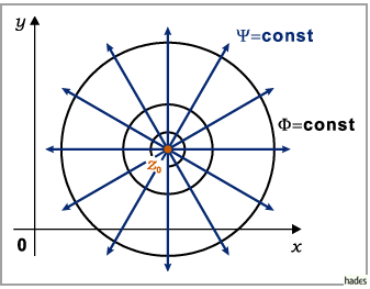 Das komplexe Potential eines Feldes, das durch eine Quelle der Ergiebigkeit