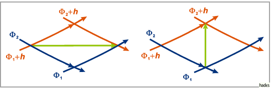 wenn sie wie Vektoren subtrahiert werden (rechte