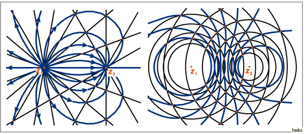 Feld- und Potentiallinienbild einer Quelle und einer Senke mit dem