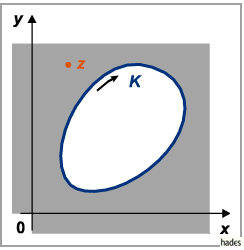 im gesamten Teil der Ebene außerhalb des geschlossenen