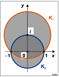 ihrem Konvergenzkreis und in dem gemeisamen (in der Abbildung doppelt schraffierten)