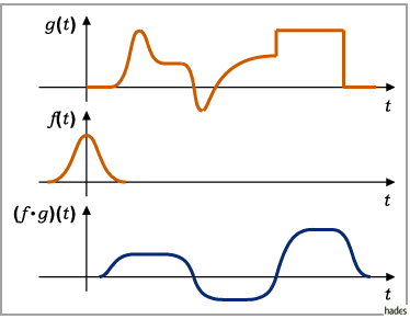 In der folgenden Abbildung ist die Faltung zweier Funktionen graphisch dargestellt.