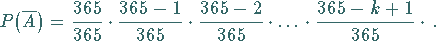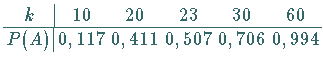 Man sieht, ab 23 Personen ist die Wahrscheinlichkeit, daß davon 2 am gleichen Tag Geburtstag haben, größer als | |