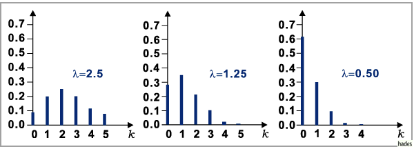 In der folgenden Abbildung sind drei POISSON-Verteilungen für