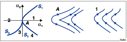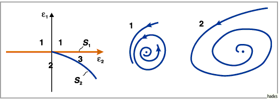(s. Abbildung), die im Gebiet 3 in einen stabilen Grenzzyklus bifurkiert