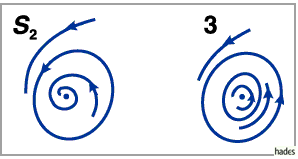 Im Gebiet 3 existieren zwei periodische Orbits, von denen einer stabil, der andere