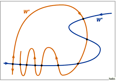 Darüber hinaus existiert in jeder Umgebung eines transversalen homoklinen Punktes eine