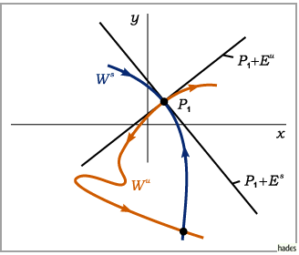 Der prinzipielle Verlauf der stabilen und instabilen Mannigfaltigkeit ist in der folgenden