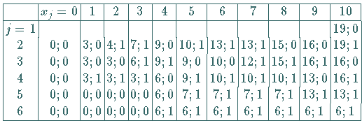 Die Tabelle enthält für alle Stufen und alle Zustände