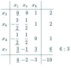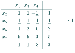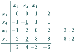 Ist die Pivotzeile nicht eindeutig zu bestimmen, dann ist die durch das neue Tableau