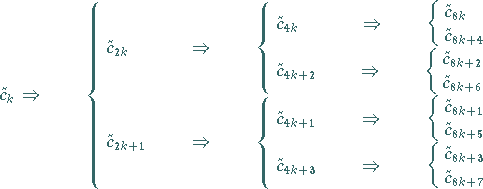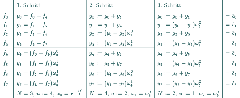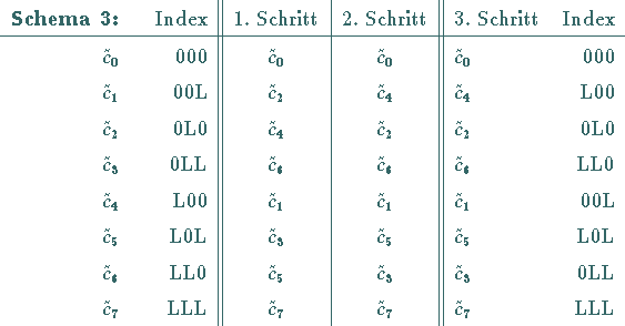 Dualdarstellung ihrer Indizes vor dem ersten und nach dem dritten Reduktionsschritt an,