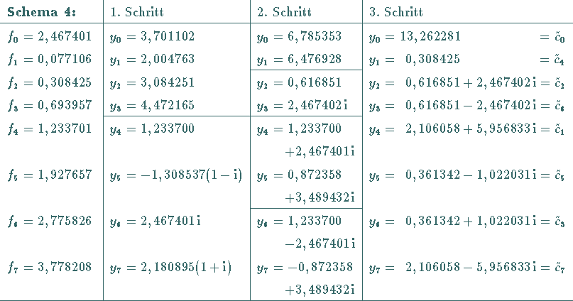 Aus dem dritten (letzten) Reduktionsschritt erhält man die nachstehend aufgeführten gesuchten reellen FOURIER-Koeffizienten gemäß (19.220):
