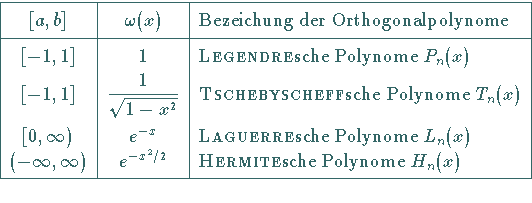 Tabelle Orthogonalpolynome