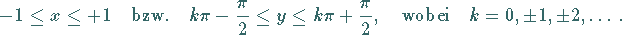 Die Definitions- und Wertebereiche der Arkusfunktionen und die gleichbedeutenden