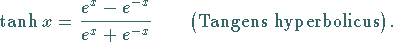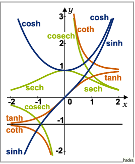 Hyperbelsinus , Hyperbelkosinus und Hyperbeltangens sind durch die