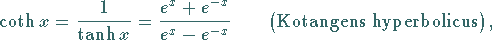 Hyperbelkotangens , Hyperbelsekans und Hyperbelkosekans sind als