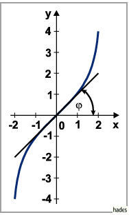 Der Koordinatenursprung ist zugleich Symmetriemittel- und Wendepunkt mit dem Tangentenneigungswinkel