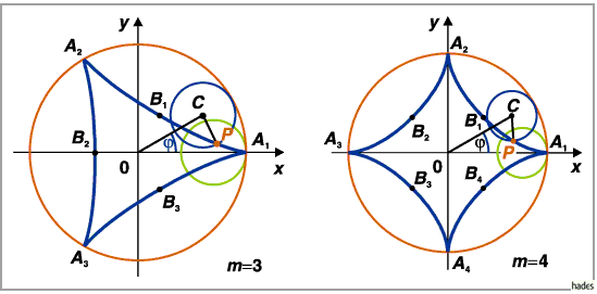 besitzt die Hypozykloide vier Zweige und wird Astroide genannt.