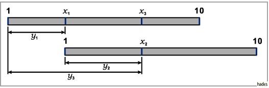 Skalen, die den gleichen Maßstabsfaktor haben und gegeneinander verschiebbar