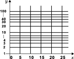 Die folgende Abbildung zeigt ein Beispiel für einfach-logarithmisches Papier.