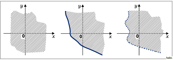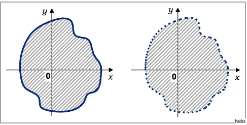 Rand in die Punktmenge des Definitionsbereiches einbezogen ist, sind durch ausgezogene