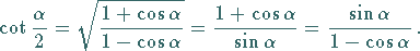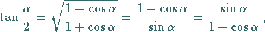 In den folgenden Formeln (Halbwinkelsätze) ist vor dem Wurzelzeichen ein