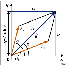 einfachsten Falle die Addition zweier Schwingungen mit gleicher