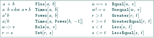 Eine Reihe häufig vorkommender Operatoren und ihre vollständige Form enthält