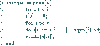 Es soll eine Prozedur geschrieben werden, die die Summe der Quadratwurzeln aus den ersten