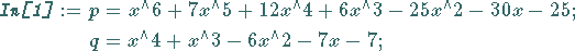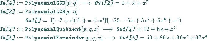 Mit diesen Polynomen ergeben die nachfolgenden Operationen: