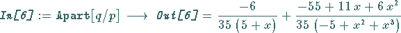 zerlegt Quotienten zweier Polynome in Partialbrüche. Auch das ist nur über dem Körper der rationalen Zahlen möglich.