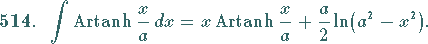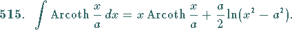 Integrale mit inversen Hyperbelfunktion, Nr. 512 bis 515