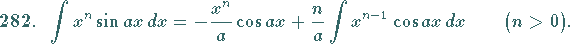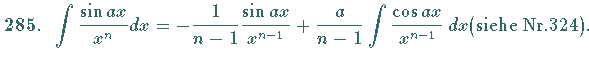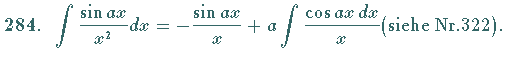 Integrale mit Sinusfunktion, Nr. 282 bis 289