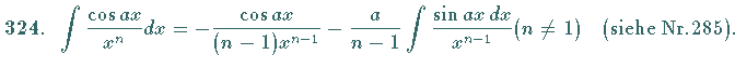 Integrale mit Kosinusfunktion, Nr. 321 bis 328