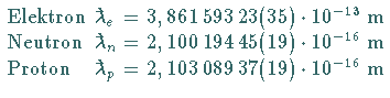 Compton-Wellenlänge von Elementarteilchen