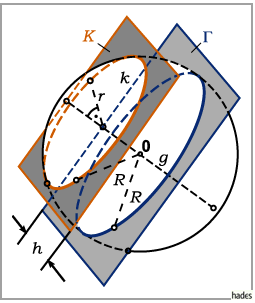 Der so entstehende Schnittkreis g in der Ebene