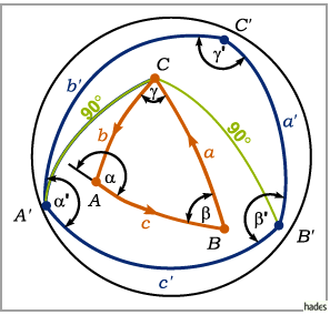 sind Supplementwinkel, ebenso wie die Seiten des sphärischen Dreiecks und die Winkel