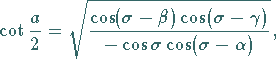 Mit dem Halbseitensatz kann die Aufgabe, aus den drei Winkeln des sphärischen Dreiecks