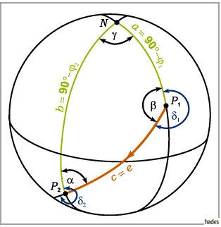 Es sind die Kurswinkel Lösung: Die Berechnung der zwei Seiten Mit dem Seitenkosinussatz