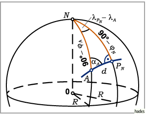 Nordpolnächster Punkt und Äquatorschnittpunkte