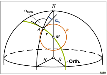 Gemäß Abbildung schneidet die Orthodrome durch