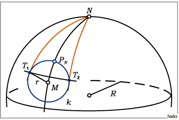 Der Kleinkreis wird von zwei Meridianen, den Tangiermeridianen , in den