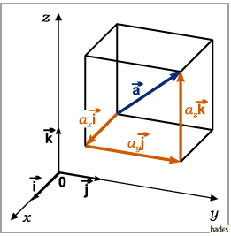 In der Abbildung bilden die durch die drei Einheitsvektoren festgelegten Richtungen