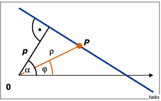 als Abstand vom Pol zur Geraden (Normalenstrecke vom Pol zur Geraden) und