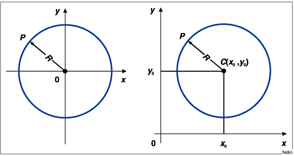 Die Gleichung des Kreises lautet in kartesischen Koordinaten für den in der linken