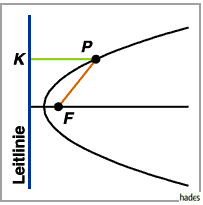 der Leitlinie, ist eine Kurve 2. Ordnung mit der numerischen Exzentrizität